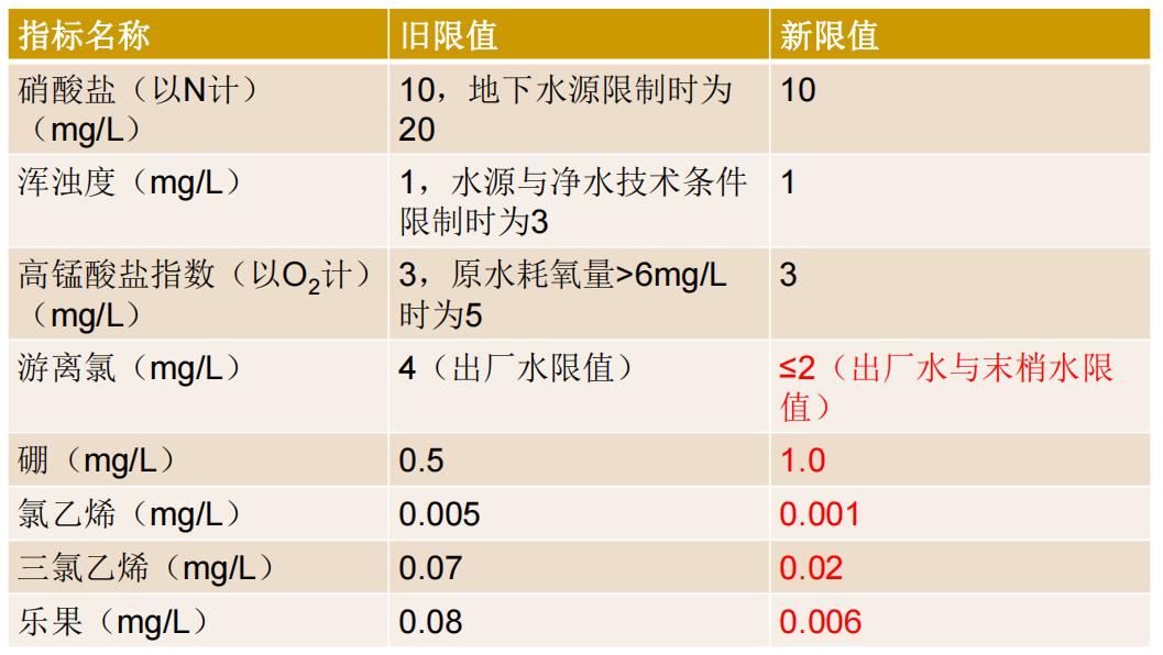 (圖:新版水質(zhì)指標(biāo)限值變化)