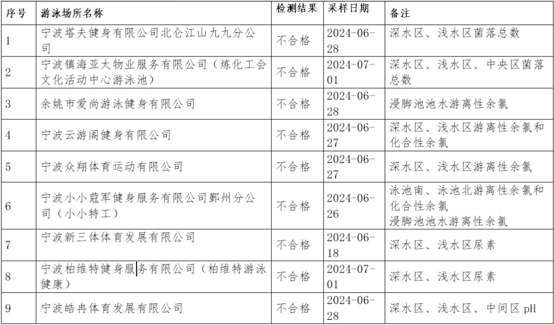原標題:9家不合格!2024年寧波首輪夏季泳池水質監(jiān)測結果出爐